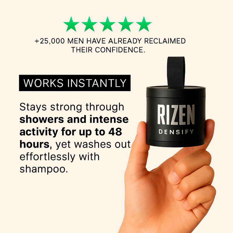 Stop wasting money on messy sprays and weak powders. RIZEN™ Densify is the only product that gives you instant, natural-looking, sweat-proof coverage without harsh chemicals or outrageous costs.