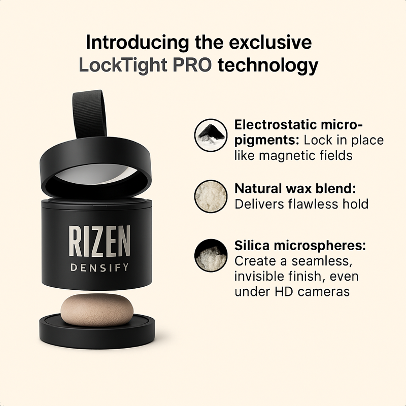 Why spray and loose fibers fail... and how RIZEN™ Densify revolutionizes hair concealment with LockTight Pro Technology.